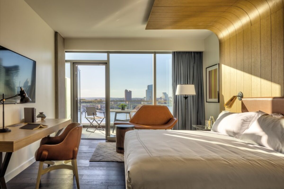 Looking on to the Patapsco River and Inner Harbor, our LEED-certified hotel is between Harbor East and Fells Point. The National Aquarium is a mile away, and we’re within two miles of Oriole Park at Camden Yards. We have a ninth-floor terrace, and complimentary perks include a welcome gift, local beer and wine tastings, and bicycle rental.