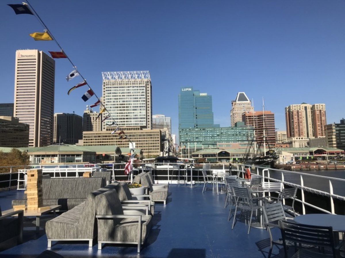 City Cruises in Baltimore offers a unique experience that you cannot get anywhere else with beautiful sites of the city, delicious food and live entertainment. Our cruises will take you along the Patapsco showcasing the beautiful sites of the Inner Harbor, Federal Hill, Fell’s Point, Fort McHenry, the Key Bridge and much more! We offer lunch, dinner and sightseeing tour cruise options. We have a rooftop deck with a bar and games including shuffleboard, foosball, Jenga and Connect4!